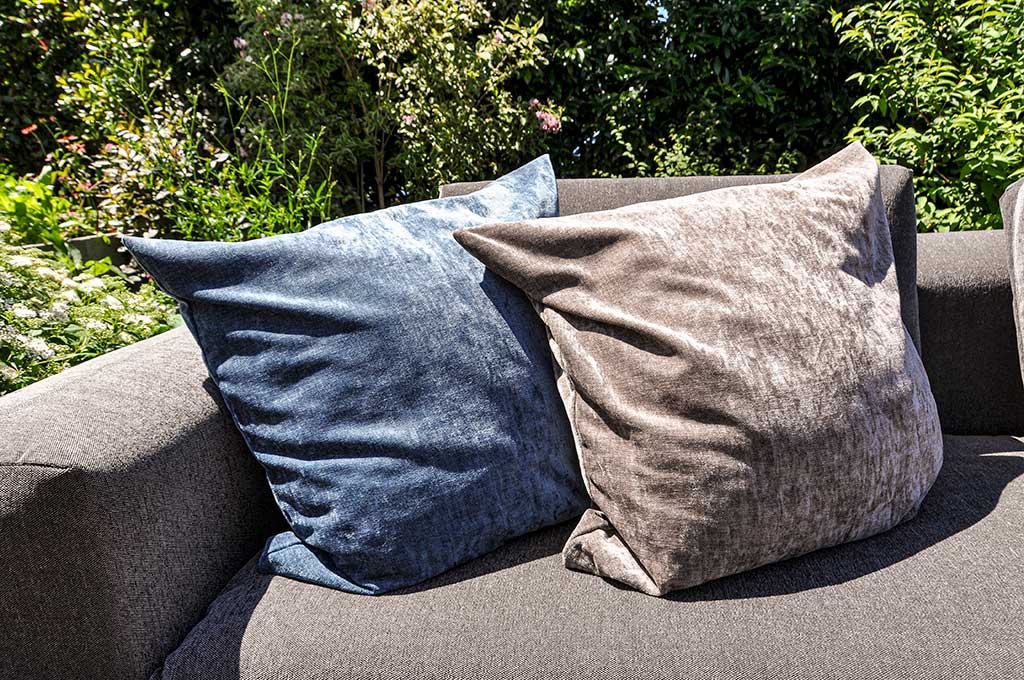 Trotz dieser herausragenden „Outdoor-Eigenschaften“ sind unsere Stoffe weich und gemütlich. Sie wirken wie ein Wohnzimmer-Sofa im Garten.